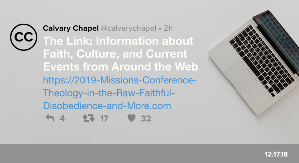 "2019 Youth Workers Conference"– live.calvarychapel.flywheelsites.comTune in this week, January 14-17, to the 2019 Youth Workers Conference. Enjoy hearing from speakers, Sarah Yardley, Daniel Fusco, Zach…